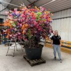 Elke zijden bloem in deze boom is met de hand geplaatst, zorgvuldig gekozen op kleur en vorm.