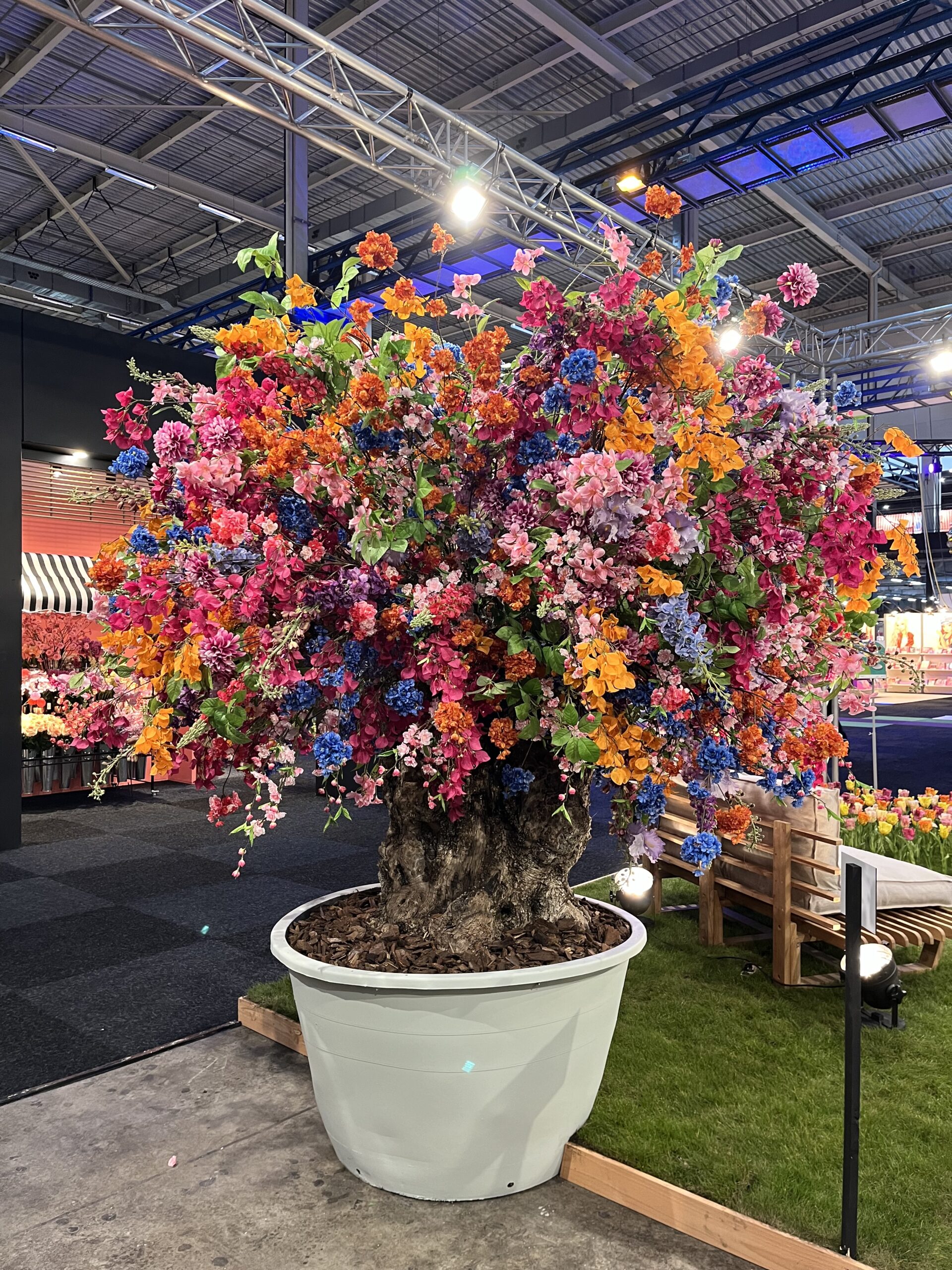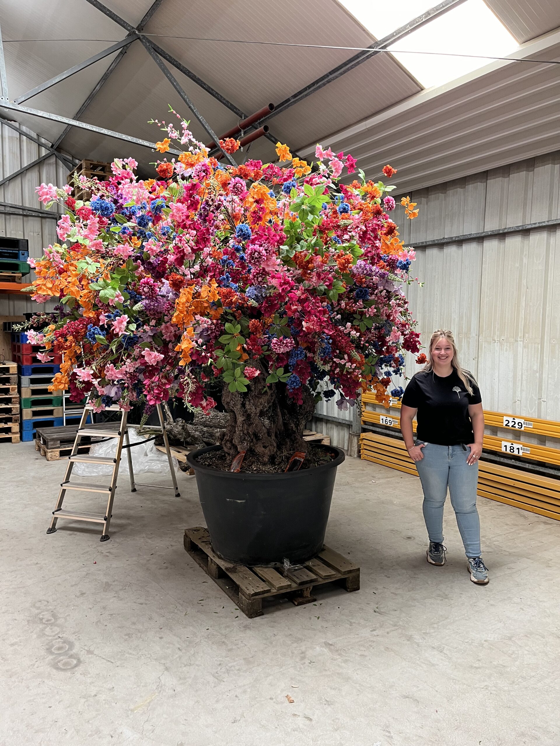 Elke zijden bloem in deze boom is met de hand geplaatst, zorgvuldig gekozen op kleur en vorm.